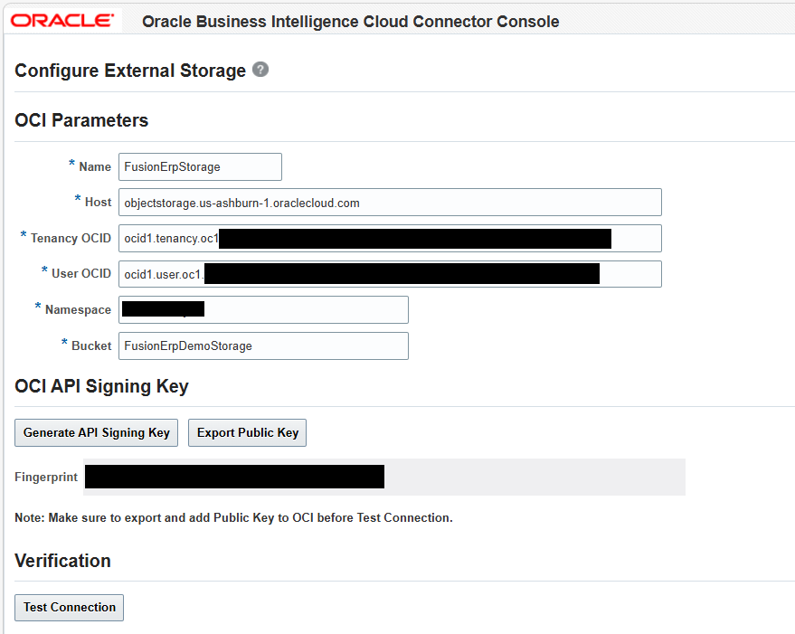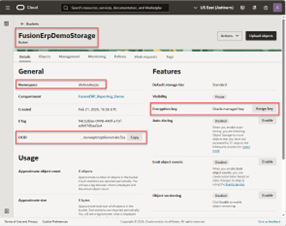 This establishes secure authentication between Fusion ERP and OCI Object Storage.