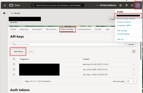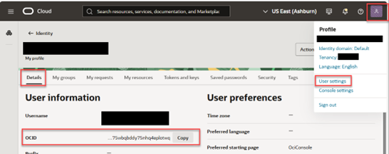 User OCID - From User Profile (see below)