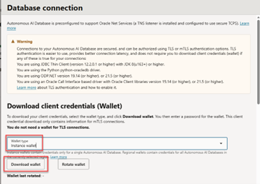 Download the Wallet.zip from the ADW Console